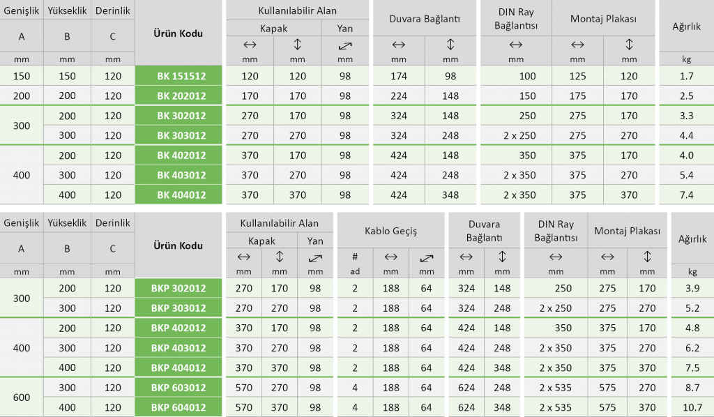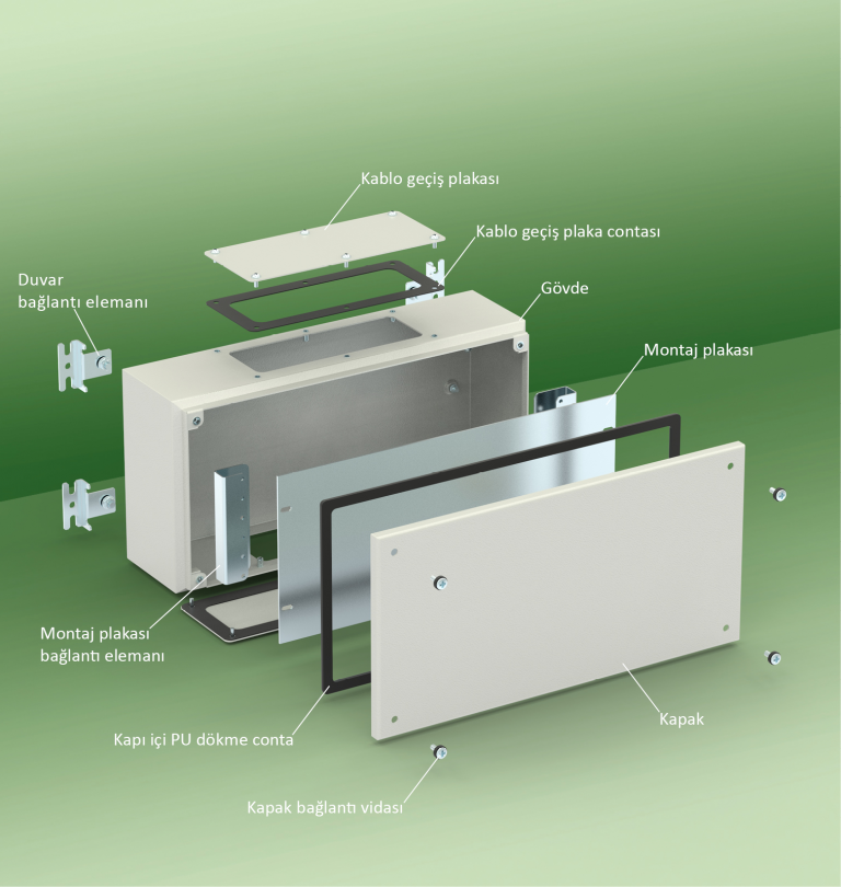 - Altta ve üstte kablo geçiş plakası (BKP)